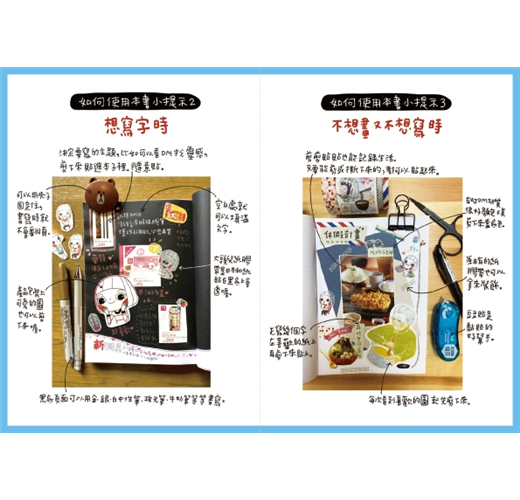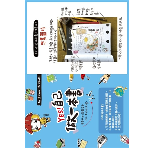 這本《YES!自己做一本書》就是和大家分享可以在生活中尋找各種小提示,只要跟著這些小提示,就能輕鬆的用文字、繪畫、剪貼,以繽紛的方式記錄生活的軌跡。