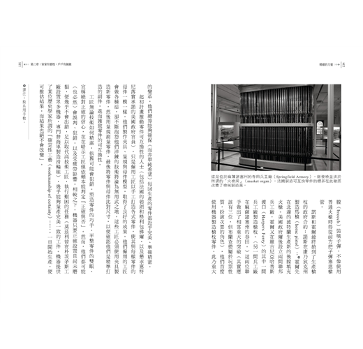 比如十九世紀初年美國的軍火工業,因為商人的貪婪,沒把精準一事放在心上,結果製作出來的槍械,要不是問題重重、無法使用,就是損壞之後難以修復,讓許多提著槍上戰場的年輕士兵,只能自求多福。根據溫契斯特的說法,美國之所以輸掉了一八一四戰爭,與這個軍火製造的精密問題,有著直接關係。