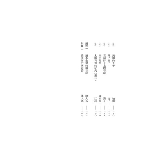 ★ 本書按照新詩發表的年代排序,收羅自一九一八到一九八五年發表的中國大陸作家新詩名作,從俞平伯開始到江河。