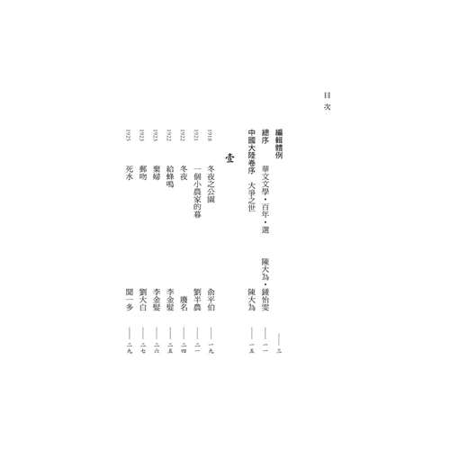 一九一八年魯迅發表〈狂人日記〉,正式揭開中國現代文學乃至全球現代漢語寫作的序幕,至今已百年。二○一八年為了迎接九歌出版社創社四十年,推出由陳大為、鍾怡雯主編的「華文文學百年選」。這是一套百年精選文集,涵蓋發展得最為成熟的四個華文文學板塊:臺灣、中國大陸、香港、馬華。選篇方向多元,包括改寫現代文學史地景的經典、膾炙人口的名篇、各世代的先鋒力作,以及被主流視野忽略的另類佳構。「華文文學百年選」係以編年史的概念收錄,並按照發表的年代排序,選出當年度最具文學指標性的代表作,每篇文末附上作者的精簡小傳。