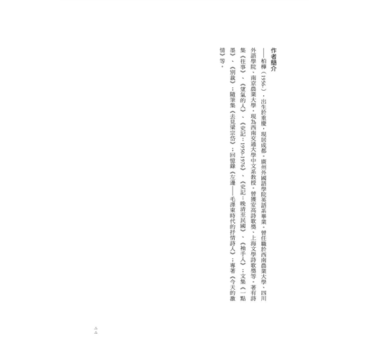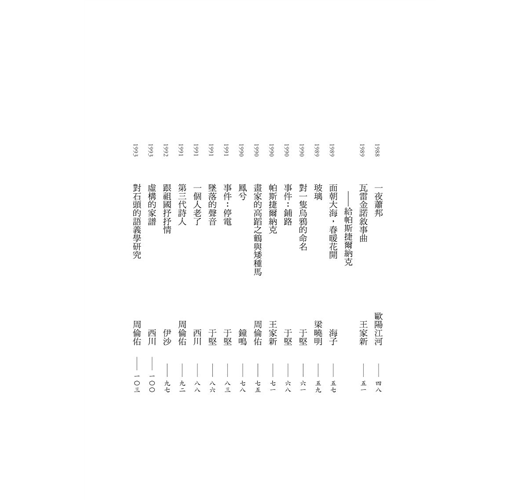 ★ 本書按照新詩發表的年代排序,收羅自一九八六到二○一七年發表的中國大陸作家新詩名作,從柏樺開始到阿頓‧華多太。