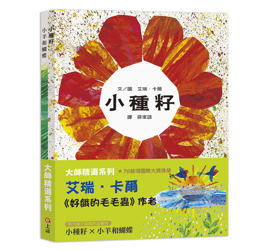 《小種籽》再小的生命都該被尊重 ╳《小羊和蝴蝶》接納與包容他人的不同艾瑞‧卡爾用神奇的拼貼魔法,創造出世界上獨一無二的色彩。他最知名的代表作《好餓的毛毛蟲》已經翻譯成 60 多種語言版本,全球銷售超過 5000 萬冊,被譽為圖畫書界的聖經。這兩部關於生命成長的作品,讓孩子看見每個生命的難得可貴,以及每個人之間的差異。
