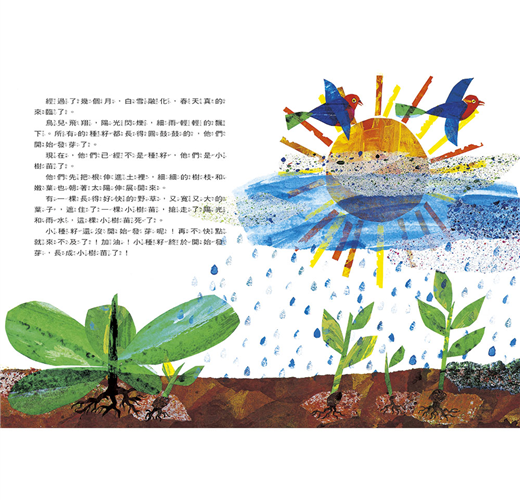 艾瑞.卡爾透過精妙的拼貼畫,將小種籽看似簡單的生命週期,變成激勵人心的生命教育故事。隨著四季更替,秋風再次吹起花朵中的種籽,再次帶著種籽飛呀飛,展開另一段新生命,大自然因而生生不息。藉由本書,讓孩子體會到生命的難能可貴,萬物都值得被尊重。