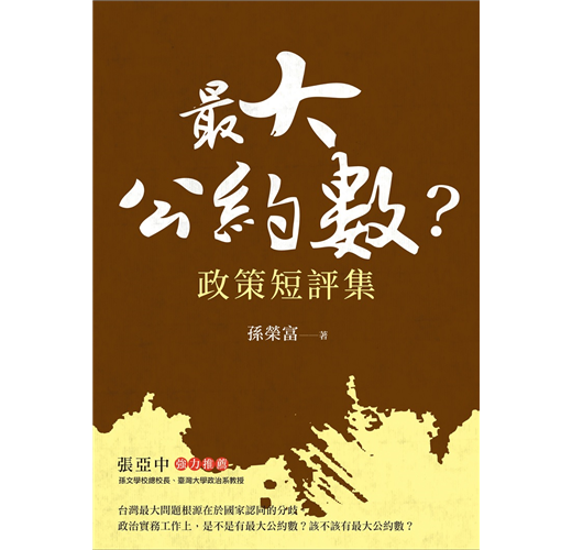 欣見榮富的新書出版。在可見的未來,台灣人民彼此之間的「最大公約數」是不是存在呢?同時,我也要祝福榮富的新書可以引起更多民眾對台灣政治與政策的關心與關注。
