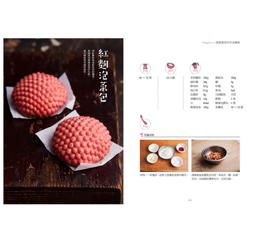 這次與史瑞暘師傅攜手合作出書,我們各自拿出自己擅長的部分,希望冷凍麵團可以增添不同的可能性。我主要是負責中式麵點的部分,一般在餐廳會吃到的小糕點,其實作法不難,在家就能製作,麵皮的調色全都能用天然色素呈現。雖然中式麵點和西式麵包在手法上稍有不同,但都一樣能做到美味健康,希望大家會喜歡,並享受在家動手做的樂趣!