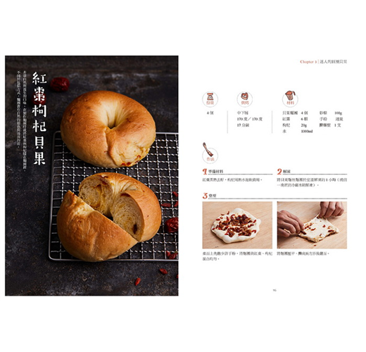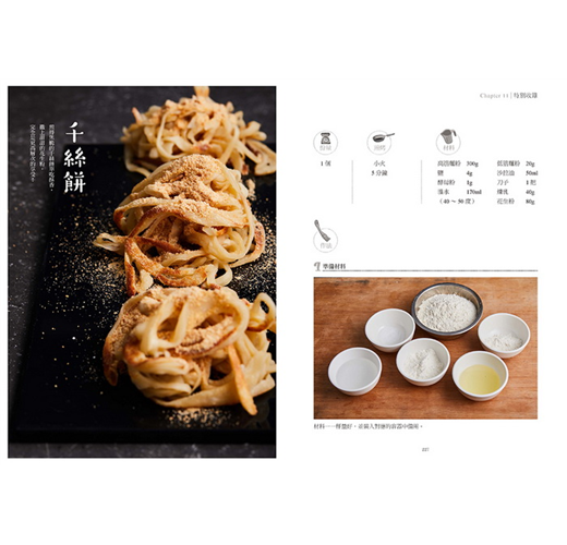 ✓Piont 2 除了多款西式基本麵團,連中式點心都教給你!除了最基本的軟麵包麵團、鄉村麵團、佛卡夏外,適合當下午茶的貝果、司康和丹麥麵包,也可以做起來放在冰箱喔!如果想換點中式口味,有饅頭口感的奶油麵團、有粿仔口感的Q皮麵團、酥到心坎裡的酥皮麵團,還有特別收錄山東傳統小吃的千絲餅,也不容錯過!