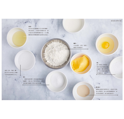 此書將介紹在前製中發酵麵團的保存,及天然食材的融合運用,並減少食用後產生脹氣及胃酸過多的情形發生,製作出多種的麵包及點心。不用擔心器具難以取得,利用生活周遭的工具,就能做出市面上名店、名物的安心美味麵點!