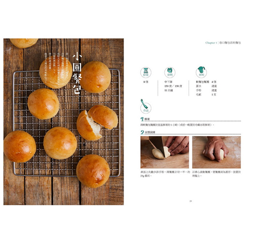 轉個念想,如果家中沒有攪拌設備,沒有專業烤箱、沒有發酵室,那何不找個理想的方法來做就好。慢慢的這本書的雛型出來了,主要介紹幾種常見的麵團,和幾種基本麵包與變化。