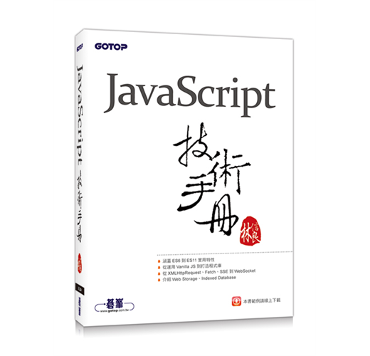 ‧探討XMLHttpRequest、Fetch、Server-Sent Event與WebSocket等標準網路通訊方案;討論Web Storage、Indexed Database等瀏覽器儲存方案。