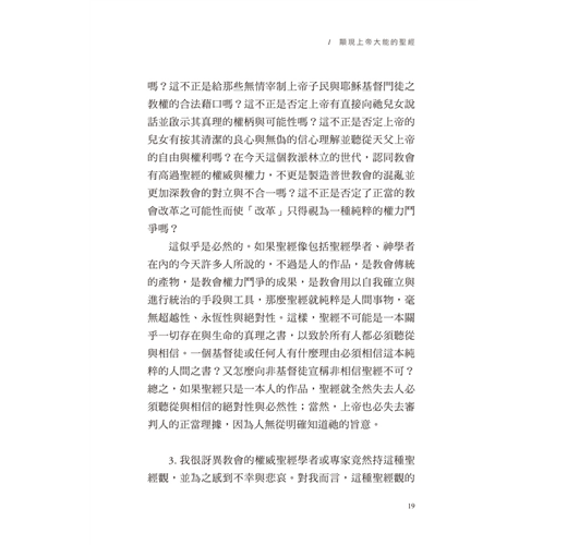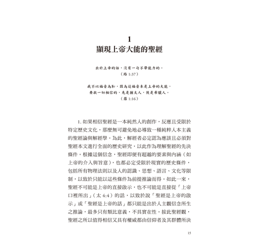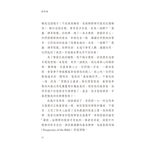 「……本書非因學術勞動而寫,更無意挑起關乎聖經的學術爭論,而是按自己有限的學問與思想能力批駁那些易誤導人信仰的聖經學說,為正統教會早已熟知的聖經信念辯護,並幫助正深陷五光十色世俗學說理論之迷霧中的基督徒,能藉著聖經堅定地相信耶穌基督及其啟示的上帝之道。……」