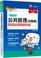 本書收錄100~108年國家考試各類科公共管理(含概要)試題,題型包含申論與測驗題型,稟持「舊題新解」方式重新解題,建立清晰的觀念,奠定讀者堅實的基礎,期望以最簡單的方式直接帶領你進入本科領域,特別是平日繁忙的上班族,本書絕對是考前速成的好伙伴!
