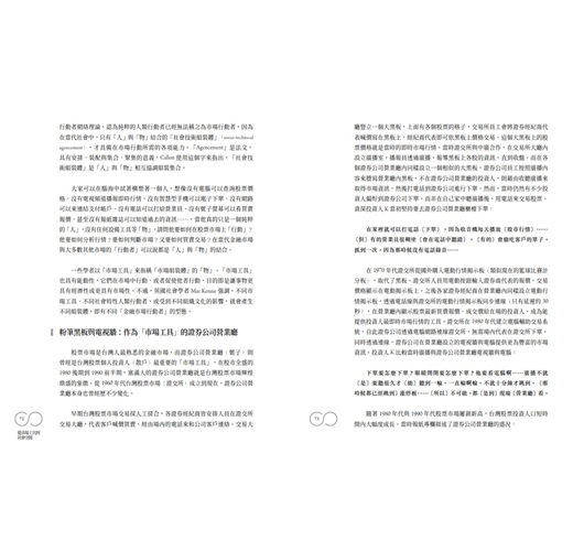 本書所要破除的正是以上的這個神話。不僅人性自利的假設違反我們的日常情感,市場經濟也從來就不是理所當然的,而是有意識的選擇。事實上,人不是原子式的個體,個人的經濟行動總是鑲嵌在社會制度、文化、物質文明當中。人類的經濟行動,必須從社會整體、相互關聯的角度來觀看,而不能將經濟行動與其他領域的行動分開。如果一昧崇拜市場經濟,不去調整市場經濟可能的問題,在此一制度中獲利的只會是少數人,而且是固定的一群人,而非整體社會。