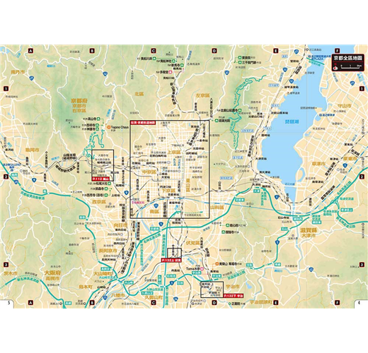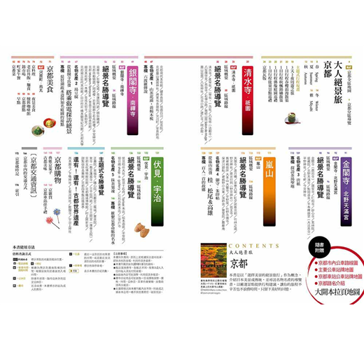 1.附贈大開本京都街道地圖、京都市內公車路線圖、京都車站公車乘車處地圖、主要公車站牌地圖以及京都路名介紹。