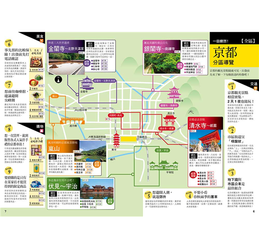 3.提供實用的旅遊小訣竅,如各式交通一日票券如何購買、計程車距離費用解析、京都車站平面地圖等,讓你旅程走得更安心、更順利!