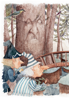 「我看見,那些灌木只是假裝成灌木,他們實際上是森林小精靈。」艾伊卡輕聲的說。紫達阿姨也壓低聲音說:
