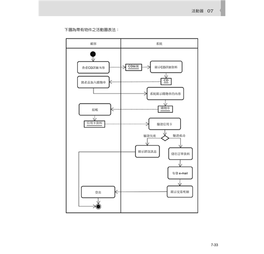 ■ 功能觀點:著重於需求分析的捕捉,使用案例圖(Use Case Diagram)的塑模,以及活動圖(Activity Diagram)的流程分析及輔助性。