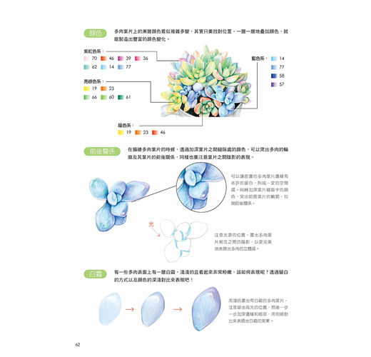 ★教你運用各種小技巧如光影、筆觸、凹凸感等,提升作品質感。