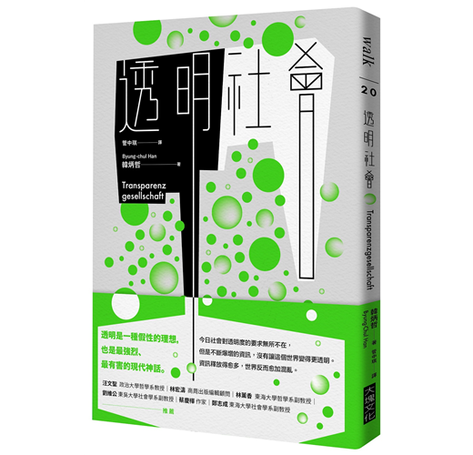 「透明」是現代的秩序/狀態。在談及腐敗和資訊自由的公共論述中,是常見使用的詞彙、口號。透明在民主制度中被視為不可或缺,不僅觸及我們的政治與經濟生活,也影響我們的私生活。任何人都可以取得任何事物的資訊。每件事,乃至每個人,都成為透明的:進行這個揭露、揭穿過程的,則是對後資本世界施加某種集體控制的組織。