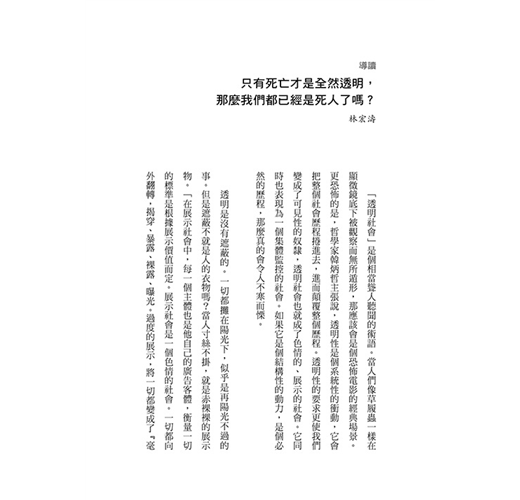 導讀 只有死亡才是全然透明,那麼我們都已經是死人了嗎?/林宏濤