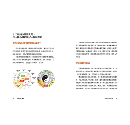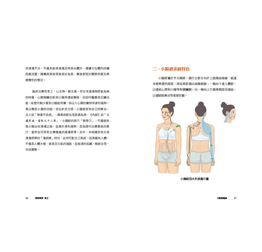 十二經絡中的雙太陽:手太陽小腸經與足太陽膀胱經 《經絡解密 》導言 小腸經總論 外剛內柔的花木蘭 一、小腸腑的特色 1.小腸是受盛之官 2.小腸經功能:化物出焉 【泌別清濁】 【小腸主液】功能之一:利小便以實大便 【小腸主液】功能之二:濡養組織器官與關節 中醫師不傳之祕:痛風與小腸的關係 二、小腸經系統特色 1.小腸經古稱「肩脈」 2.太陽主一身之表,護衛君主 三、小腸經的合作關係 小腸與心的關係〜從屬護衛 1.小腸經是護主心切的禁衛軍 2.與心同行的好婦友 胃 小腸 大腸的關係〜吸收血津液一條龍 1.小腸與胃的關係〜營養再吸收 2.小腸與大腸的關係〜津液及糟粕 3.小腸與大腸協助人體氣血運行 小腸與膀胱的關係〜水務及防禦 小腸與脾的關係〜水精輸送 小腸與腎的關係〜隱性關係 小腸經四大系統 一、小腸手太陽之脈(經脈) 手太陽小腸經─循行特色 文武兼備的小腸經 1.上肢部的「手刀」路線 第一個關節處:「上踝中」 彎曲而行,善於控制旋轉的「養老穴」 第二個關節處:「出肘內側兩骨之間」 「後溪穴」連結小腸經和督脈 第三個關節處:「出肩解,繞肩胛,交肩上」 小腸經上肢部解密: 重點在肩胛骨,屬於心臟保護結構 2.胸腹部的「御膳房」路線 竹葉的功效與小腸經特質的關係 小腸經胸腹部解密: 主要與營養的吸收和輸送有關 3.頭面部的「耳目」路線 頸部和面部四穴: 天窗穴、天容穴、顴穴、聽宮穴,個個身手不凡 鼻旁路線也是小腸與心的反應區 小腸經頭面部解密1: 頭面部循行特色與其為心的耳目有關