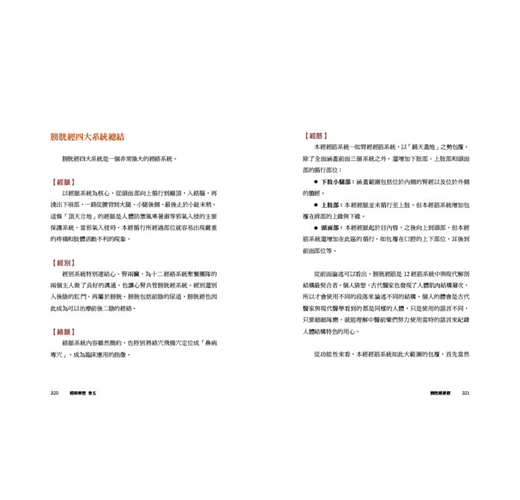 小腸經的雙V循行路線與《卷四》經脈、經別有關連 小腸經頭面部解密2: 臉部回春的秘密—向上提拉肌肉 小腸經頭面部解密3:顴骨的健康學和面相學 顴穴位置及針法 手太陽小腸經─病候 1.循行所過的肢體部位: 上肢循行部位的疼痛和面頰、下頷的腫脹疼痛 2. 頭面五官科:以耳目病為主,耳病是重點 3.小腸經主液之所生病 中醫師不傳之祕:肩胛骨對於人體的影響 中醫師不傳之祕:胸痺與小腸經的關係 中醫師不傳之祕:太陽經主表證的特色 二、手太陽之正(經別) 肩腋心腸線 小腸經別在胸腹部的隱形道路 中醫師不傳之祕:「胞脈」意涵和相關病證 1.「胞」的定義 2.「胞」的病變反應區 3.與「胞」相關的病證:分為血病與水病兩大類 4.與「胞脈」相關的病證〜「倒經」 中醫師不傳之祕:癥瘕積聚與婦科的關係 中醫對於「癥瘕積聚」的概念 腸覃及石瘕 三、手太陽之別(絡脈) 小腸絡脈─循行特色 支正絡肩 小腸絡脈─病候 中醫師不傳之祕:支正穴的秘密 四、手太陽之筋(經筋) 小腸經筋─循行特色 上肢部(路線104) 頭面部(路線507) 小腸經筋解密:本經筋在頭部及五官的循行意義