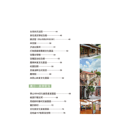 美學聚落:16座文創美學聚落,老舊景物蛻變為文藝與時尚的場域。