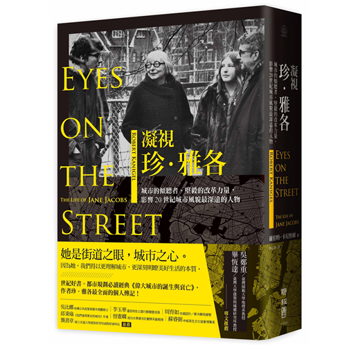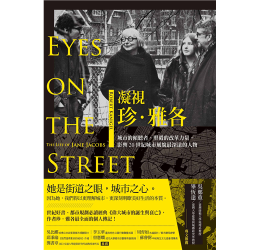 蛤!「珍‧雅各傳」?今年暑假聯經編輯黃淑真來信,要我幫即將出版中譯本的珍‧雅各傳記《凝視珍‧雅各》(Eyes on the Street: The Life of Jane Jacobs)寫推薦序。當時我正在徒步環島,走在新竹、苗栗之間的西濱快速道路上。剛剛下了場雷陣雨,全身溼答答的,晚上準備落腳在白沙屯拱天宮的香客大樓。不知道是被太陽曬昏了頭,還是淋雨腦袋進了水,我納悶著,珍‧雅各既不是偉人,又稱不上名流,而且還為了幫兒子躲避兵役,舉家從美國「落跑」到加拿大,臺灣讀者會有興趣了解雅各媽媽的生平種種嗎?