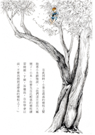 小麥那時候年紀也很小,他爬上樹想帶小米下來,但他爬到最高的樹枝上往下一看,發現實在太高了,小麥自己心裡也害怕得不敢爬下去。