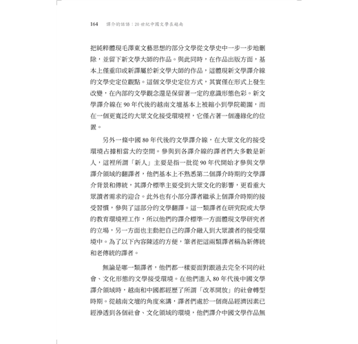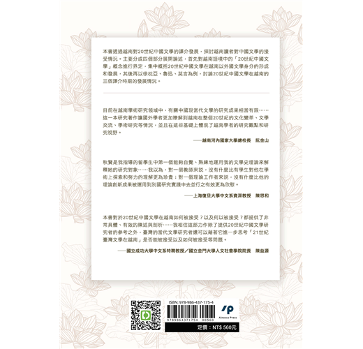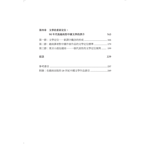 本書對於20世紀中國文學在越南如何被接受?以及何以被接受?都提供了非常具體、有效的陳述與剖析……我相信這部力作除了提供20世紀中國文學研究者的參考之外,臺灣的當代文學研究者還可以藉著它進一步思考「21世紀臺灣文學在越南」是否能被接受以及如何被接受等問題。