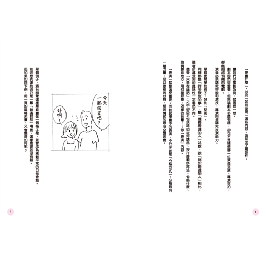 在該課程當中,我會請聽講者按照題目要求,畫出 兩頁的分格漫畫,接著由我一邊說明「怎麼畫可以更好理解、更加有趣」,當場予以修改。在本書之中,我們將會觀摩「分格空間」課程中按題目畫成的實際作品與改作範例,逐步實踐分格的訣竅。