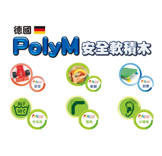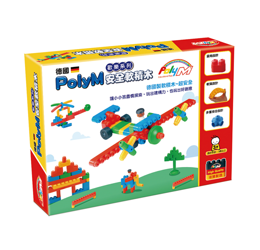 德國高品質PolyM安全軟積木,軟式材質和圓角的設計,顧慮小小孩的安全性,讓小小孩可以盡情探索,獲得建構積木的樂趣。歡樂系列提供各種造型、色彩繽紛的積木配件,讓積木拼組的變化無窮,可以創作成各種交通工具,還有其他豐富的變化。在組合過程中激發孩子的創造力。獨家圓孔設計,讓孩子更容易拼組與拆卸,獲得創作的成就感。美國小兒科醫師研究證明,積木多變的造型與玩法可以孩子在一次次的嘗試與反覆建構中,增強邏輯思考與空間概念的建立,還可以促進孩子手眼協調和小肌肉發展能力,同時能幫助孩子提昇創造力。配合孩子好動的特性,並為了顧及孩子的安全,這款軟積木的設計,讓孩子玩得更盡興。