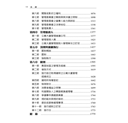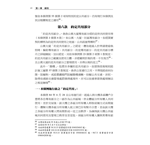 本條例實務見解豐富而多樣,著者持續以最大的努力理解消化,在每一章節中儘可能提綱挈領,將各類有參考價值的見解儘量予以體系化歸納,深盼有助於閱讀和瞭解。緣於「逐條釋義」體例,其法律概念(如約定專用)在諸多條文均有涉及者,則於各該條文為簡明或詳實之解說,以利於逐條查考。因而,部分概念說明,容有重複,祈請先進諒察。本書篇幅甚鉅,縱經著者多次修正校對,誤謬疏漏之處仍在所難免,懇請方家多予指正。