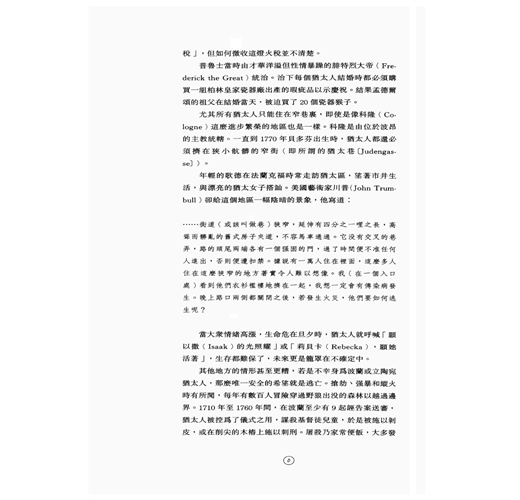 「他們是個古老民族,聲名遠播,生命強韌,於其目標多能達成。我不禁想到猶太人,他們歷經亞述諸王、埃及法老、羅馬皇帝,以及阿拉伯的哈里發。」