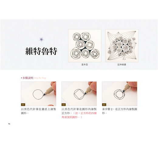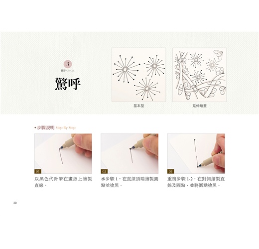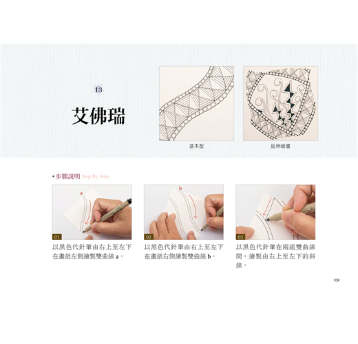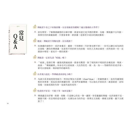 零藏私介紹禪繞畫基礎、常用圖樣,讓想學禪繞畫的人,能跟書中步驟Step by step輕鬆上手。