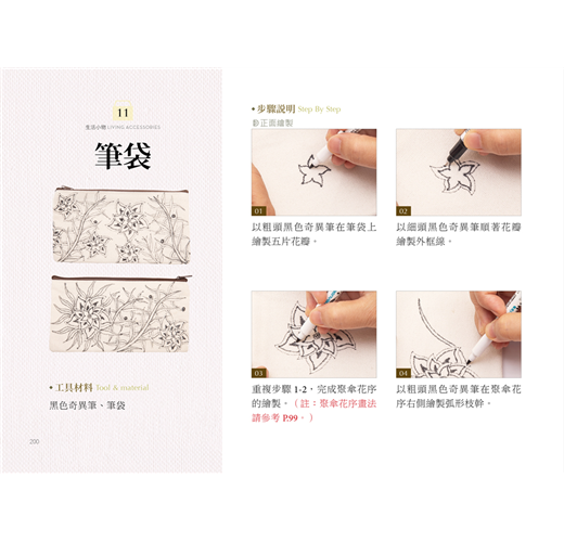 在書中零藏私教授將禪繞畫應用於生活小物中,讓你將生活中常用的襪子、帆布袋、花器、紅包袋等小物,製作成獨特小物!