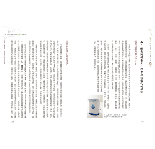 林董事長此本書正提供「健康又長壽」的秘訣之一:酵素養生法。所謂「書中自有黃金屋、自有顏如玉」,讀者在本書中,除了可以悠遊在作者知性、理性及感性的不同面向鋪陳外,更可以藉著書中作者分享實用的「五行酵素套餐食譜」,充分享受可口、健康的餐點。