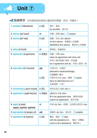 本書共有20回合,每回均有高頻單字、近義字小補帖與字彙選擇三個部分。考生可自行於大考前安排高頻單字的複習進度,先熟背單字及其常用搭配字彙後,再做字彙選擇部分來驗收自己的學習成果。近義字小補帖的設計提供歷屆常考的近義詞組,大量補充該詞組可接通用的搭配單字或文法語法,以提昇學生的英文能力;而字彙選擇的部分全書均附有中譯解析,置於隨書的夾冊之中,該夾冊還會放上全書的簡易單字表──單字隨身GO,方便學生攜帶隨時複習。