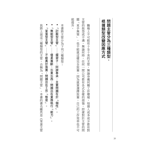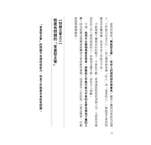 ◎不負責任、知道缺點卻又不改正,這是「工作態度」有問題的笨蛋型主管。