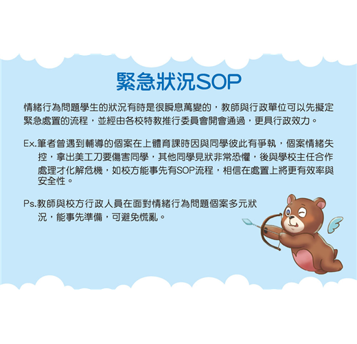 寧靜的校園中,一個班級內的學生尖叫聲交錯著教師怒吼聲,讓整個校園忽然間躁動起來,這樣的情節不時在學校上演,情緒壓力貫穿學生與教師,讓人喘不過氣,一個學校或家庭面臨情緒行為症狀孩子時,通常是精疲力竭與人仰馬翻,而教師、相關輔導人員與家長該如何協助孩子呢?