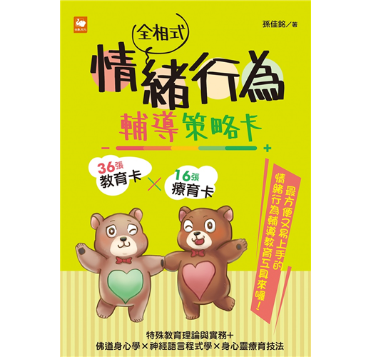 名人推薦:第一次聽到佳銘提及這套全相式情緒行為輔導策略卡的想法,至今已兩年多,有幸能在這套策略卡從初心到逐漸成形的過程中,扮演著傾聽者的角色。隨著他不斷調整與成長,我也慢慢體認到,這套策略卡是佳銘對自己的承諾,他不僅想要幫助個案,也想要支持個案周遭的人,努力在情障生的孤單、不被了解,以及老師家長的束手無策間,調出一個可以收聽的頻道,容許原本存在於個別平行世界而無法交錯的頻率,碰撞出美麗的樂聲。誠如最後一張策略卡所寫的心法與祝福,我們必須有愛,愛讓這世界變大,愛讓衝突與無助消融,祝福每一位與此卡相...