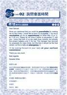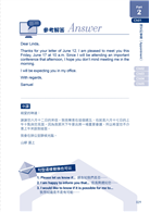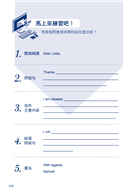 本書的「馬上來練習吧!」部分為每個 Unit 下,隨附配合該篇主題郵件的練習題目。此部分分為填入關鍵句與獨立完成段落的引導式寫作方式,讓讀者在吸收寫信技巧後,能以此方式一步步建構實作經驗,一邊鞏固所學知識,一邊在應用過程中確實了解運用的方法。練習結束後,本書也立即附上精選參考解答,並列出模板句型,讓讀者可以擁有比較的範本,還能溫故知新,活用各種不能不會的職場英文 E-mail 寫法!