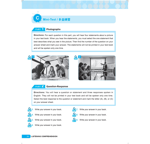 本書備有近660 題超逼真的Mini-TOEIC 練習,充分實戰演練,並附上完整的題目解析。