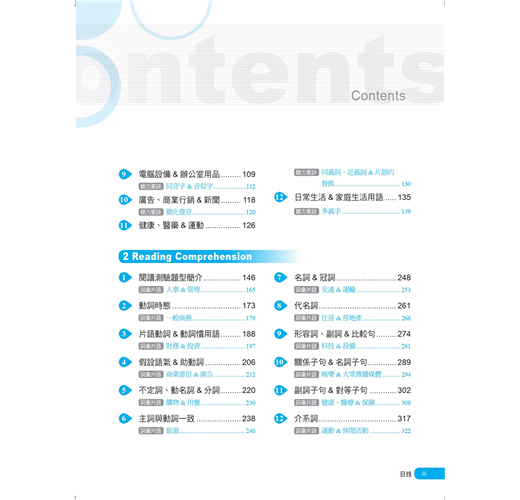 閱讀所需「必備字彙片語」,不但依照內容主題整理,更有TOEIC 550 必勝詞彙與800 超越詞彙,讓您不論是準備考試或是教學都清楚而有目標。