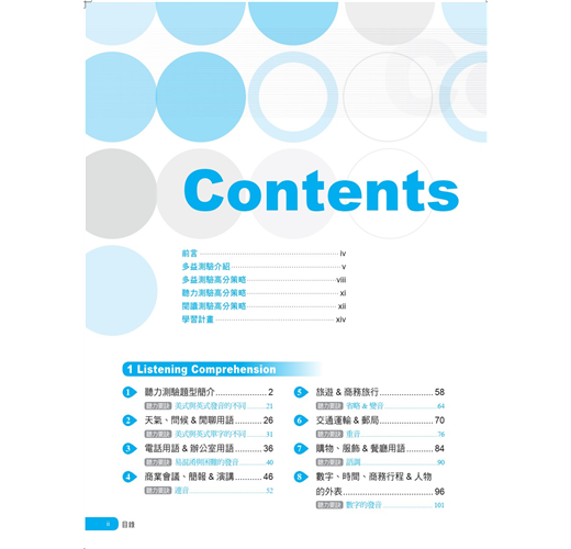 本書聽力依照最新考試方向有多國口音錄製,並且在每個單元都列出聽力考試中英語發音的特色,讓考生能確實聽懂英美人士的發音。
