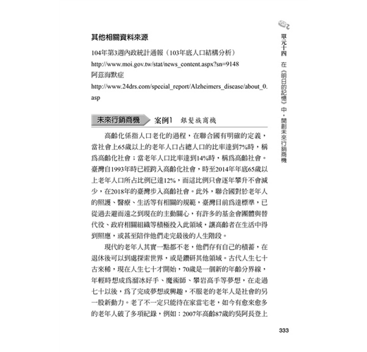 ★ 運用大量的案例作為行銷主題的研討、行銷的戰略、市場占有率、創意行銷等一連串的行銷主題。