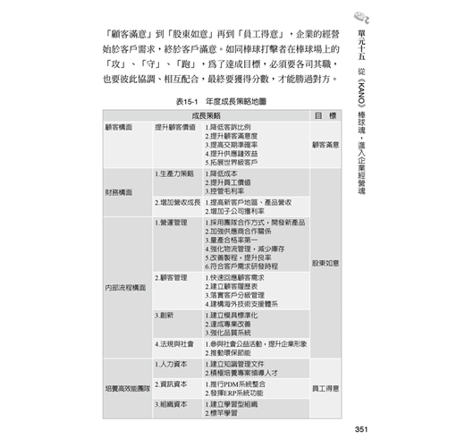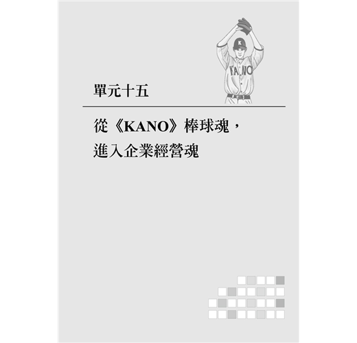 本書共有十五單元,選用超過十五部影片,跨越時間與地點的距離,從《三國演義》到《KANO》,部部經典、部部是商機。單元一「行銷管理」為行銷戰略;單元二「推銷實務」為行銷戰術;單元三至單元六的紅海策略,是身在如戰場的商場上的戰略運用;單元七至單元十一的藍海策略,將介紹多種的技法進行創新行銷;單元十二至單元十四行銷未來;單元十五則為行銷的整合,從營業開始、也從營業結束。