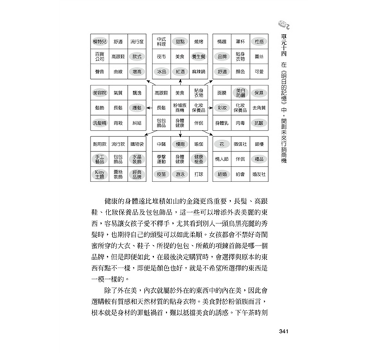 大量運用知名電影、電視劇,分析一系列重點行銷主題。從核心概念、策略戰術、市場實務,到創意行銷。