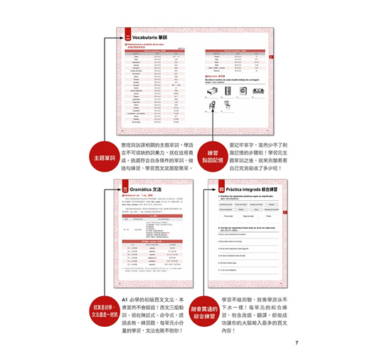 光是有特色還不夠!作為一本讀本,《愛上西班牙文A1》並不會像網路資料般如此零散,相反地,馬里奧老師循著一貫的嚴謹教學邏輯,讓使用本書的讀者,能夠有最全面、最貫通的學習內容!