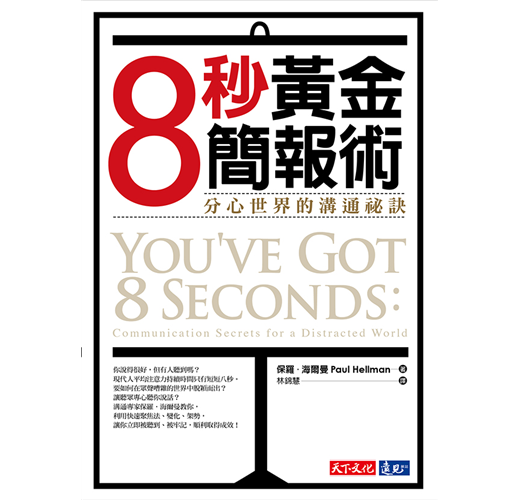 下次當你開口說話,對方若不是仔細聆聽,就是充耳不聞,你只有短短八秒鐘表現,請好好把握。