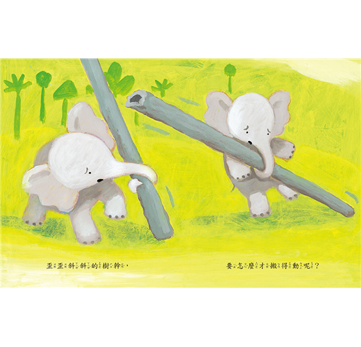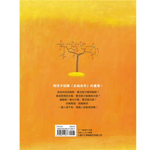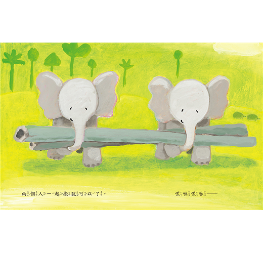 透過小象、刺蝟和小熊等動物合力解決許多難題,如搬動粗重的樹幹、喝不到水瓢裡的水和玩不了自己獨坐的翹翹板等,描繪出互相幫助的喜悅與溫暖,並藉由簡單可愛的構圖和童趣的故事結構,讓孩子了解互助合作的價值;故事敘述亦加入狀聲詞的摹寫,不僅豐富幼兒的語言學習,也增添親子共讀時的樂趣。本書於韓國初次出版迄今,一直受到許多大小讀者的喜愛,也被收錄在韓國小學的課本中。
